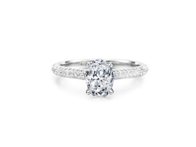 18K戒台,0.90克拉 F VS1 GIA主鑽,鑲嵌120顆共重0.37克拉配鑽。
