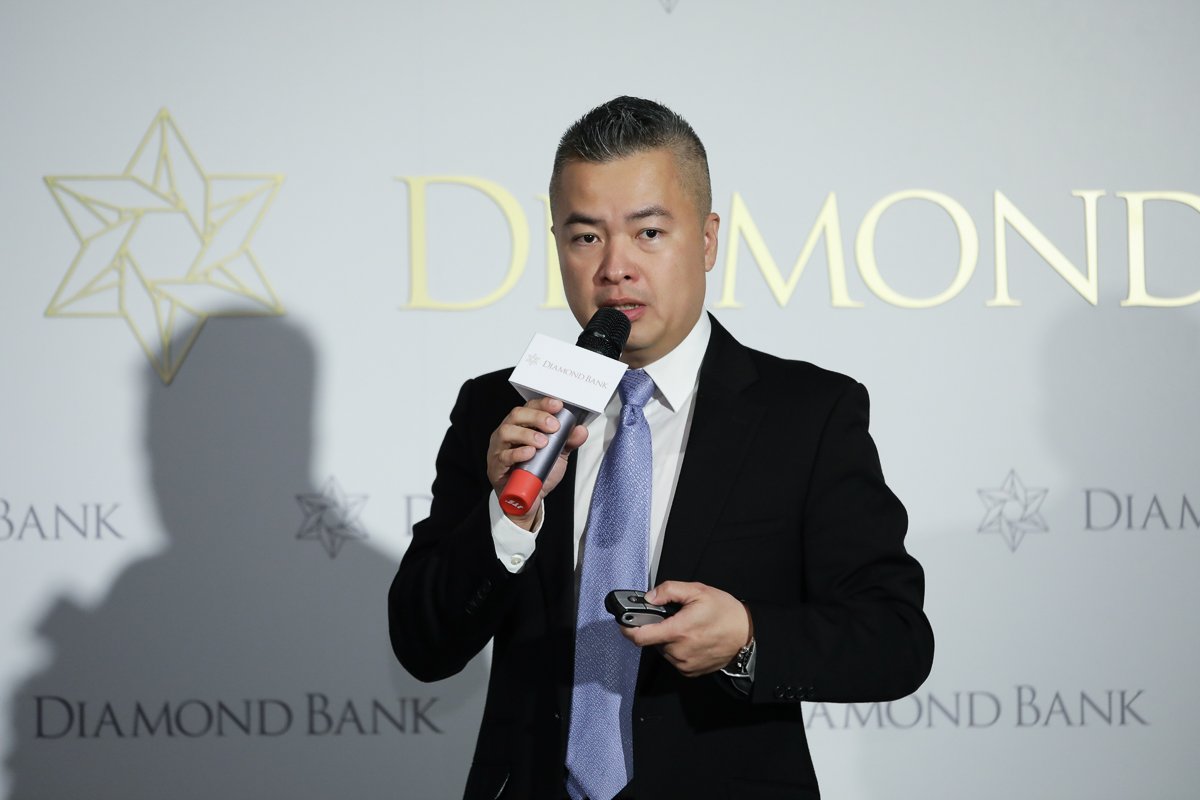 Diamond Bank 總經理王筱璇 Cynthia 與媒體朋友介紹 Diamond Bank 推出的創新鑽石全方位服務。