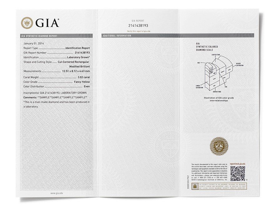 GIA人造鑽石鑑定結果報告範例。資料來源https://goo.gl/YYrRuL