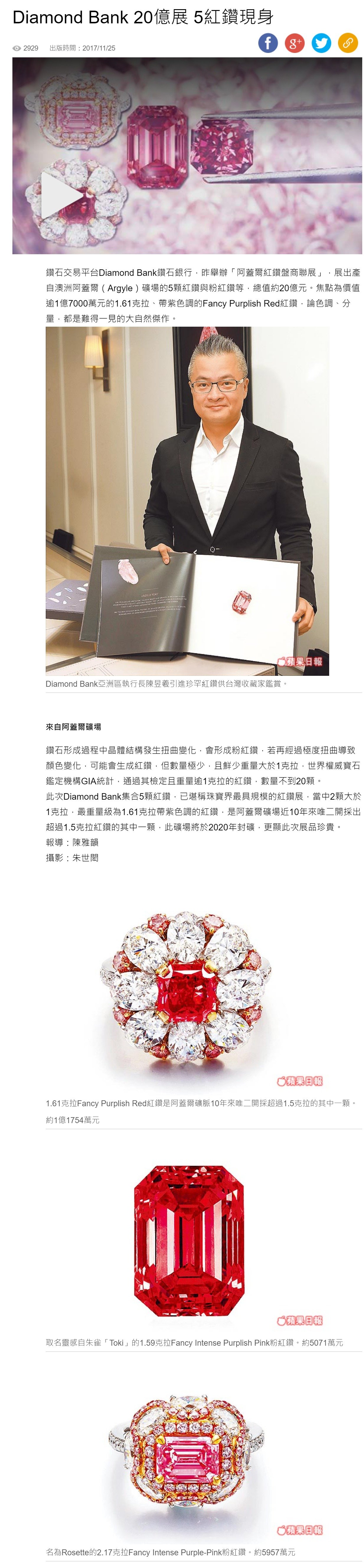 蘋果日報 │ 超珍罕紅鑽大集合發佈日期為 2017 年 11 月 25 日