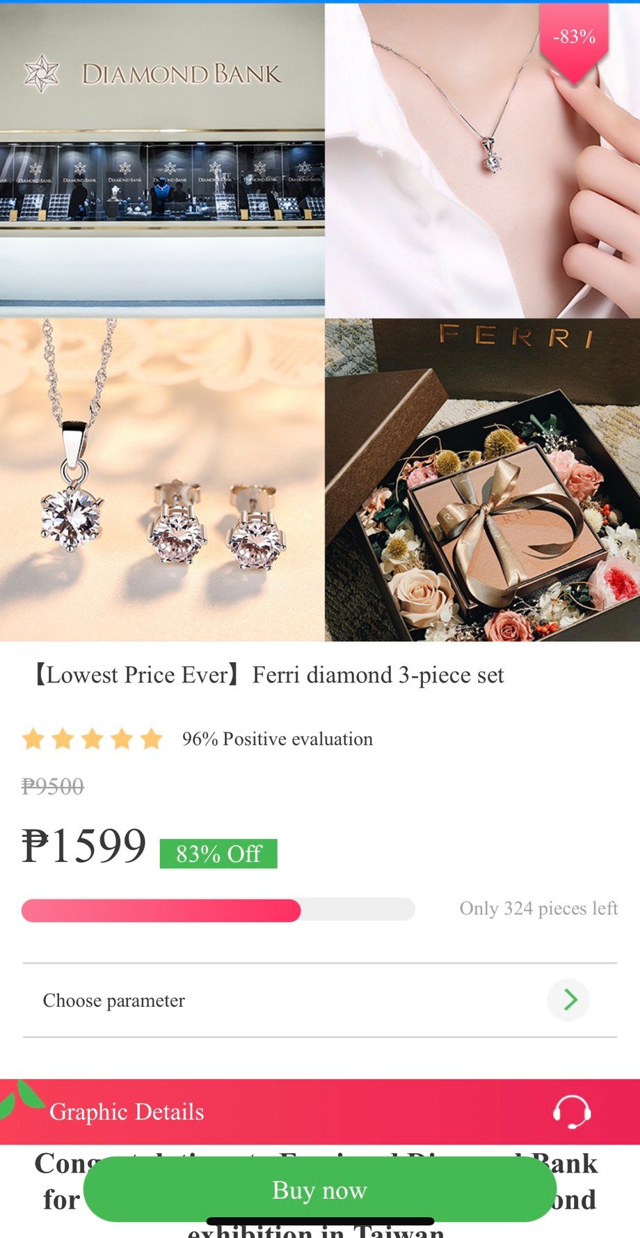 從菲律賓消費者附上的截圖可看見,原先要價數十萬的珠寶,標價僅1599披索,折合新台幣只要923元;甚至有來自菲律賓的顧客直接向假賣家詢問後,詐騙集團仍不斷宣稱其商品確實是來自斐儷珠寶,並為合法販售。