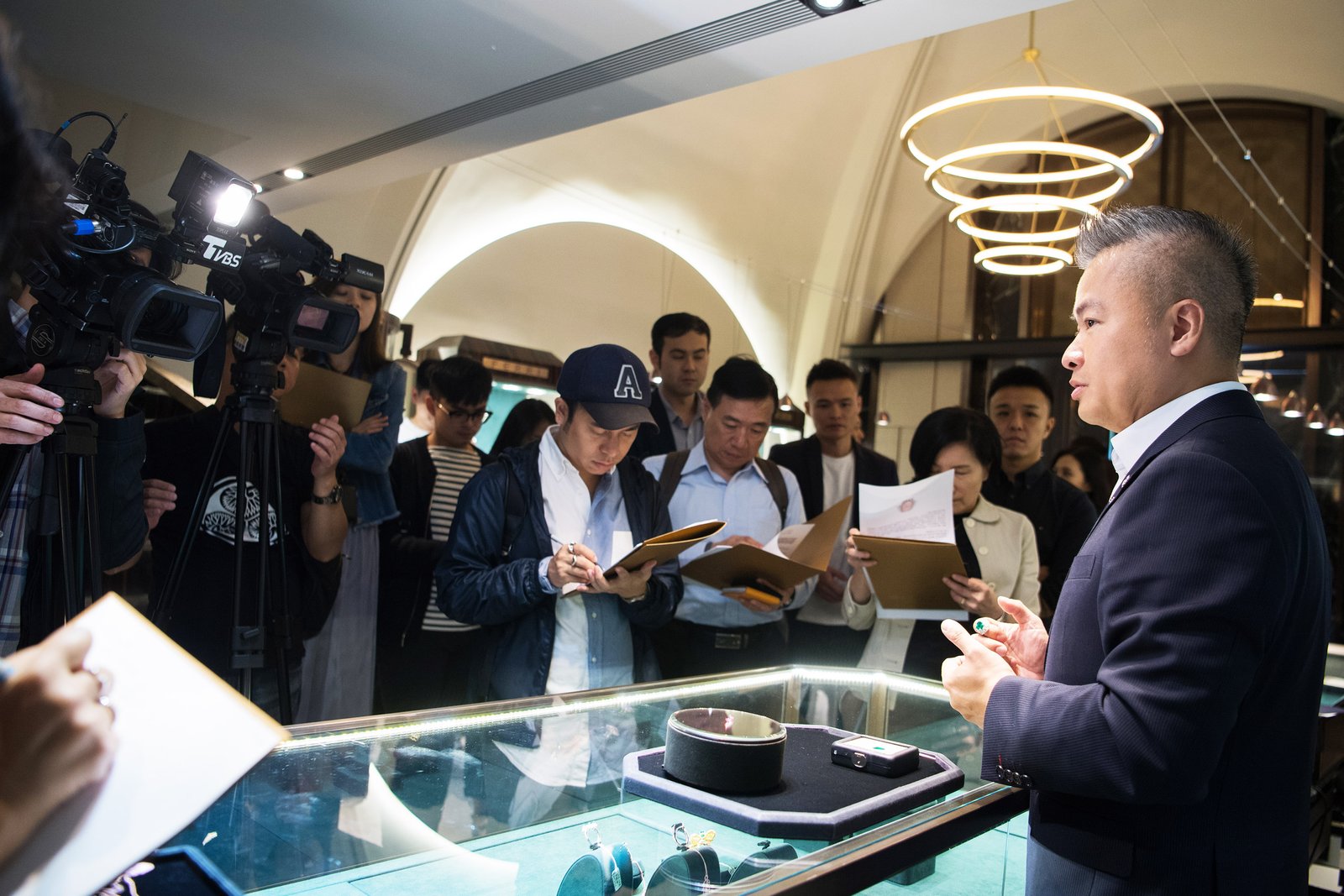 由「斐儷珠寶總經理暨 Diamond Bank 亞洲區 執行董事 陳昱羲StevenChen」為媒體解說本次聯展重量級展品